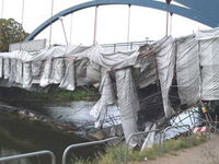 Am 24.9.09 stürzte ein Großteil des Gerüstes, welches sich an der Muldebrücke befindet, in die Mulde. Zu Verzögerungen bei der Brückensanierung soll es nicht kommen.