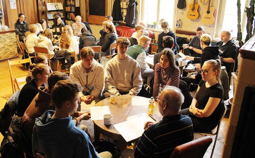 In der vergangenen Woche fand – erneut im KulturBahnhof – ein sogenanntes „Gesprächscafé“ statt. Hier hatten die Schüler die Möglichkeit, innerhalb von drei 20-minütigen Runden mit aussagekräftigen Experten ins Gespräch zu kommen: Bad Dübens Stadtchronist Lutz Fritzsche, Tobias Schwabe als ehrenamtlicher Denkmalschützer des Lagers sowie Söllichaus Ortschronistin Petra Kristin.