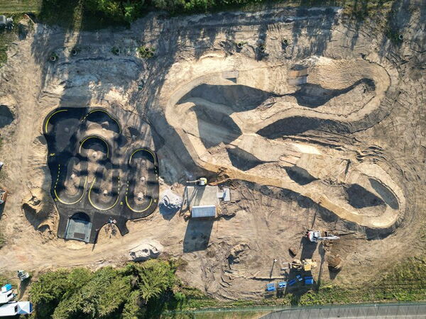 Aus der Vogelperspektive: Der Bau für den neuen Bike- und Skatepark in der Durchwehnaer Straße befindet sich in den letzten Zügen. Foto: Schneestern