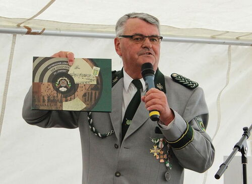 Thomas Bock präsentierte den „Historischen Abriss der Schützen zu ‚Dieben‘", der unter maßgeblicher Arbeit von Günter Tempelhof in unserem Verlagshaus „Heide-Druck" entstand. Foto: (Wsp) Phillipp