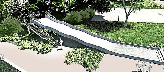 So in etwa soll die Breitwellenrutsche im NaturSportBad Dübener Heide aussehen. Grafik: INFU Ingenieurgesellschaft und Umweltplanung mbH